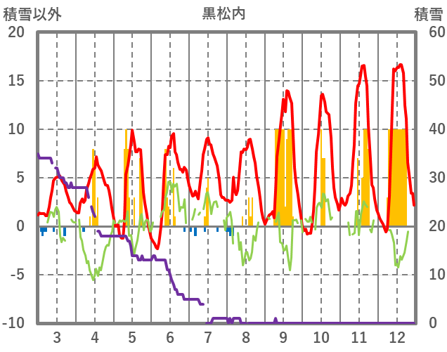 | 日 | 時 | 気温 | 降水 | 風向/風速 | 日照 | 積雪 | 降雪 |