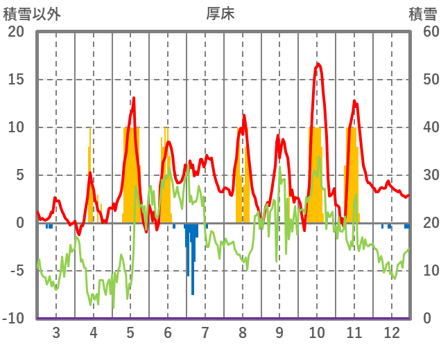 | 日 | 時 | 気温 | 降水 | 風向/風速 | 日照 | 積雪 | 降雪 |
