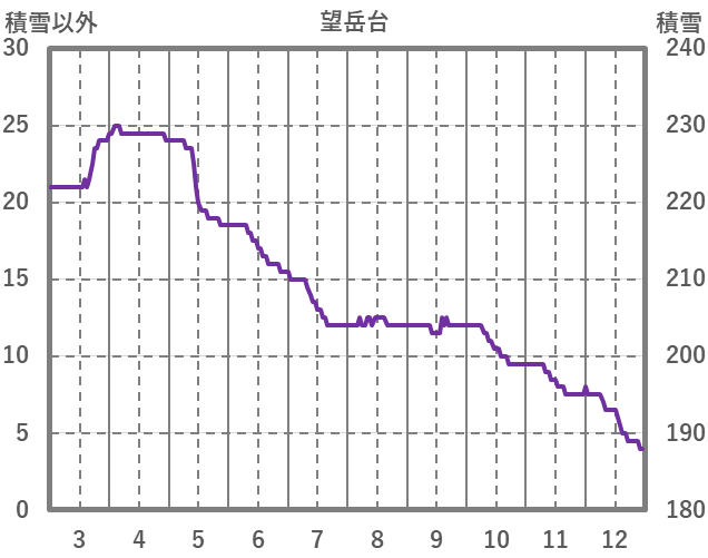 | 日 | 時 | 気温 | 降水 | 風向/風速 | 日照 | 積雪 | 降雪 |