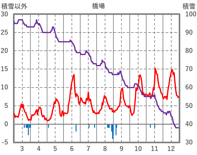 | 日 | 時 | 気温 | 降水 | 風向/風速 | 日照 | 積雪 | 降雪 |