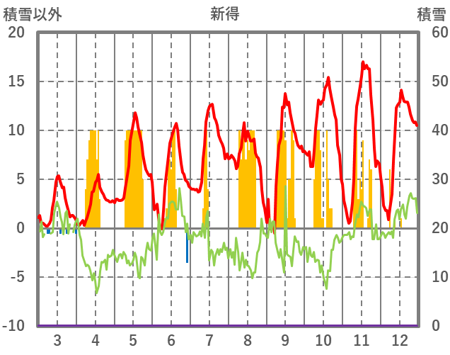 | 日 | 時 | 気温 | 降水 | 風向/風速 | 日照 | 積雪 | 降雪 |