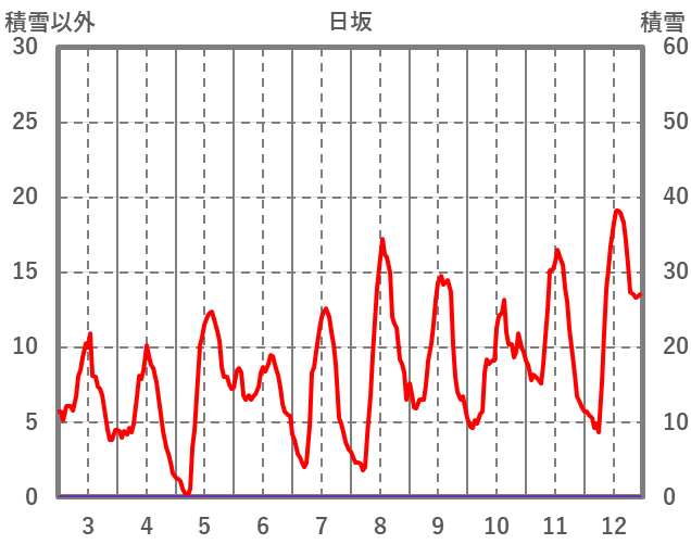 | 日 | 時 | 気温 | 降水 | 風向/風速 | 日照 | 積雪 | 降雪 |