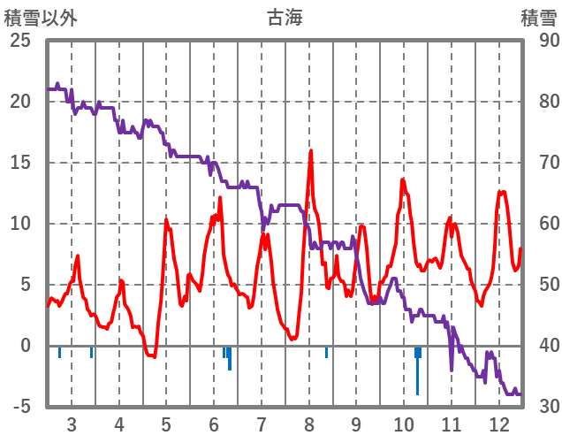 | 日 | 時 | 気温 | 降水 | 風向/風速 | 日照 | 積雪 | 降雪 |