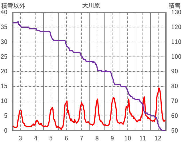 | 日 | 時 | 気温 | 降水 | 風向/風速 | 日照 | 積雪 | 降雪 |