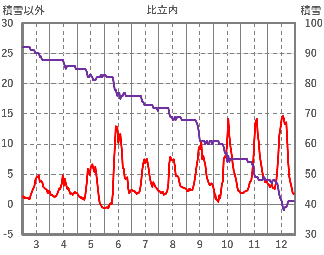 | 日 | 時 | 気温 | 降水 | 風向/風速 | 日照 | 積雪 | 降雪 |