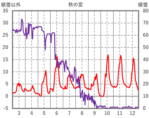 | 日 | 時 | 気温 | 降水 | 風向/風速 | 日照 | 積雪 | 降雪 |