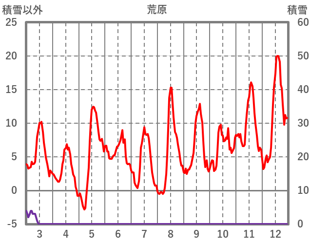 | 日 | 時 | 気温 | 降水 | 風向/風速 | 日照 | 積雪 | 降雪 |