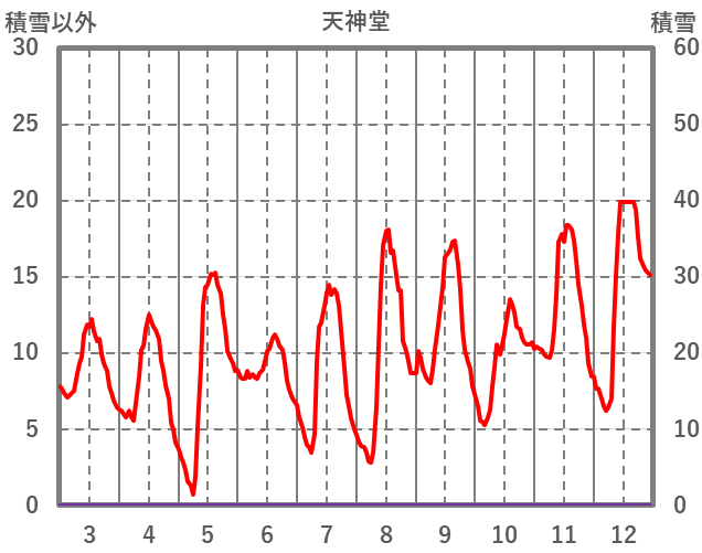 | 日 | 時 | 気温 | 降水 | 風向/風速 | 日照 | 積雪 | 降雪 |