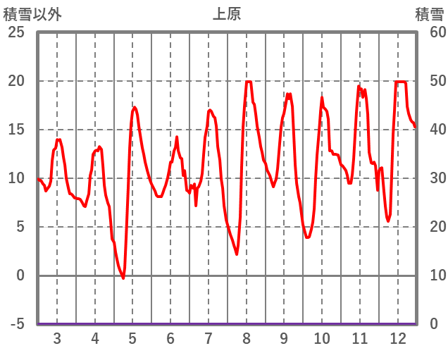 | 日 | 時 | 気温 | 降水 | 風向/風速 | 日照 | 積雪 | 降雪 |
