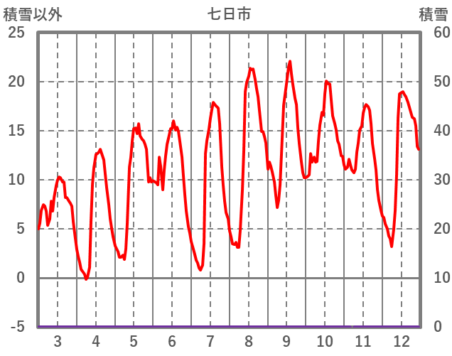 | 日 | 時 | 気温 | 降水 | 風向/風速 | 日照 | 積雪 | 降雪 |