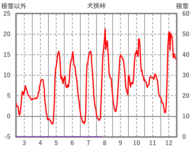 | 日 | 時 | 気温 | 降水 | 風向/風速 | 日照 | 積雪 | 降雪 |