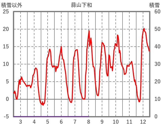 | 日 | 時 | 気温 | 降水 | 風向/風速 | 日照 | 積雪 | 降雪 |