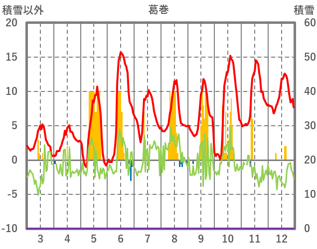 | 日 | 時 | 気温 | 降水 | 風向/風速 | 日照 | 積雪 | 降雪 |