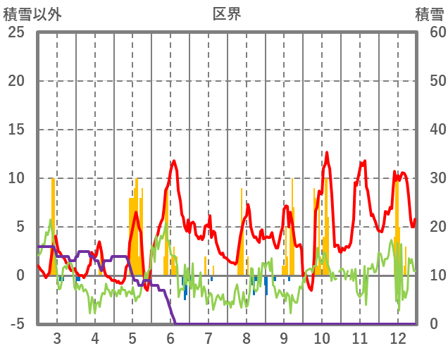 | 日 | 時 | 気温 | 降水 | 風向/風速 | 日照 | 積雪 | 降雪 |