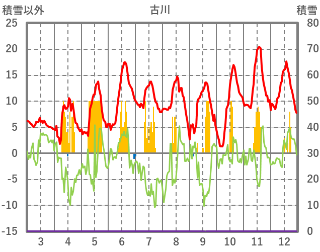 | 日 | 時 | 気温 | 降水 | 風向/風速 | 日照 | 積雪 | 降雪 |