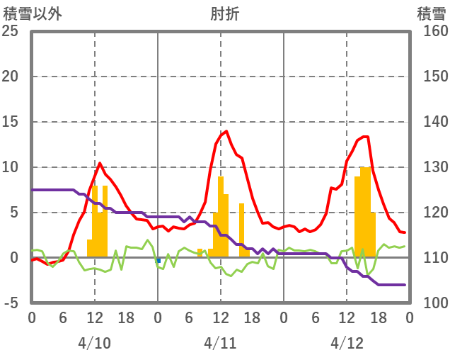 | 日 | 時 | 気温 | 降水 | 風向/風速 | 日照 | 積雪 | 降雪 |