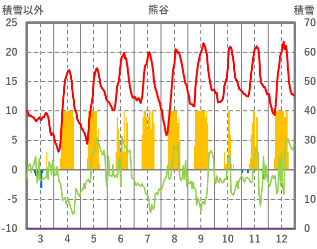 | 日 | 時 | 気温 | 降水 | 風向/風速 | 日照 | 積雪 | 降雪 |