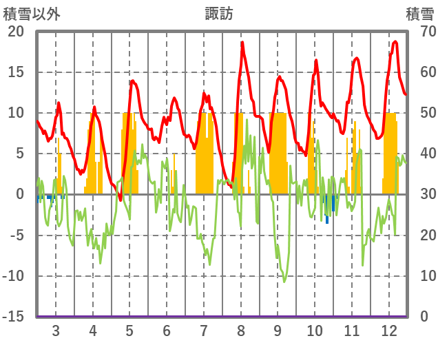 | 日 | 時 | 気温 | 降水 | 風向/風速 | 日照 | 積雪 | 降雪 |