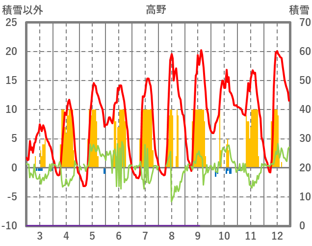 | 日 | 時 | 気温 | 降水 | 風向/風速 | 日照 | 積雪 | 降雪 |