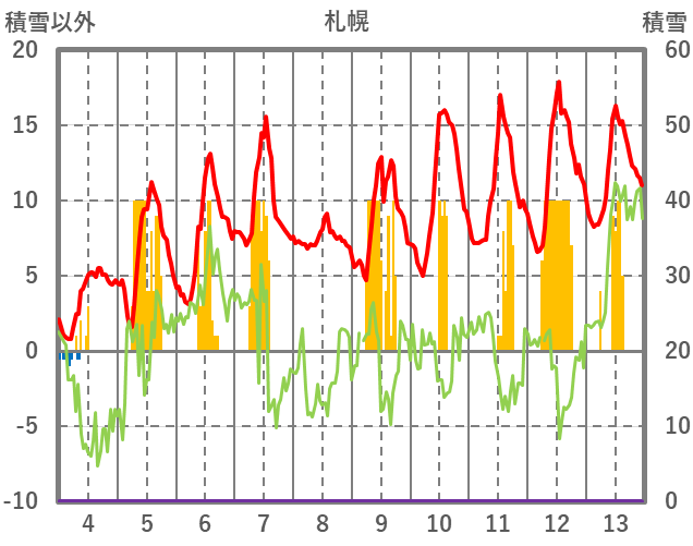 | 日 | 時 | 気温 | 降水 | 風向/風速 | 日照 | 積雪 | 降雪 |