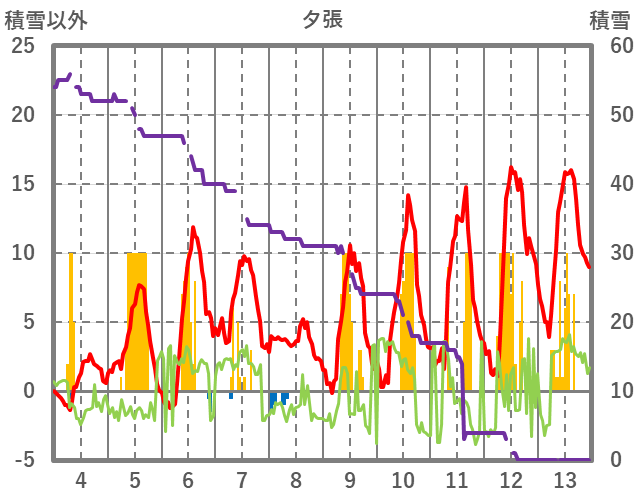 | 日 | 時 | 気温 | 降水 | 風向/風速 | 日照 | 積雪 | 降雪 |