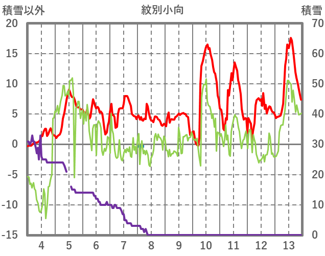 | 日 | 時 | 気温 | 降水 | 風向/風速 | 日照 | 積雪 | 降雪 |