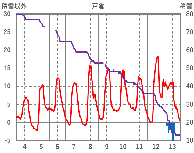 | 日 | 時 | 気温 | 降水 | 風向/風速 | 日照 | 積雪 | 降雪 |