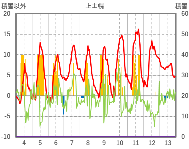 | 日 | 時 | 気温 | 降水 | 風向/風速 | 日照 | 積雪 | 降雪 |