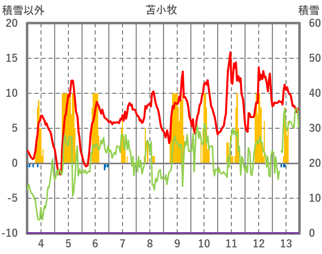 | 日 | 時 | 気温 | 降水 | 風向/風速 | 日照 | 積雪 | 降雪 |