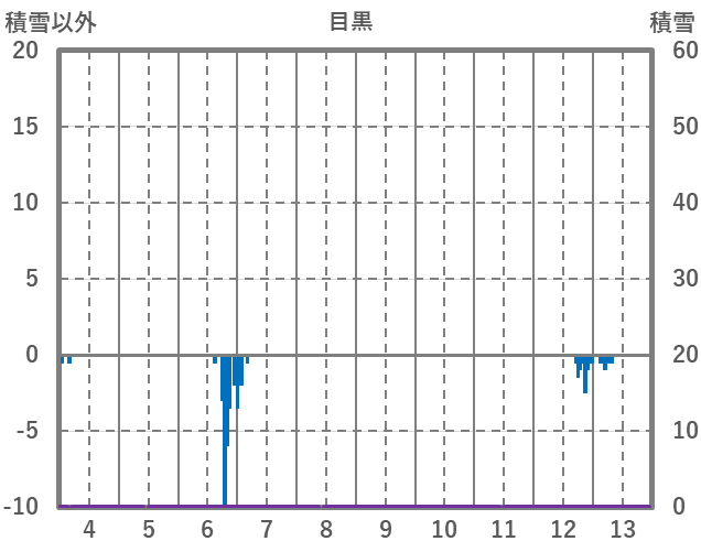 | 日 | 時 | 気温 | 降水 | 風向/風速 | 日照 | 積雪 | 降雪 |