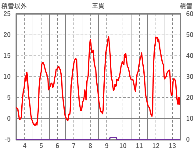 | 日 | 時 | 気温 | 降水 | 風向/風速 | 日照 | 積雪 | 降雪 |