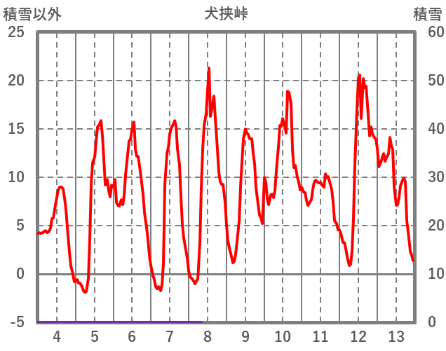 | 日 | 時 | 気温 | 降水 | 風向/風速 | 日照 | 積雪 | 降雪 |