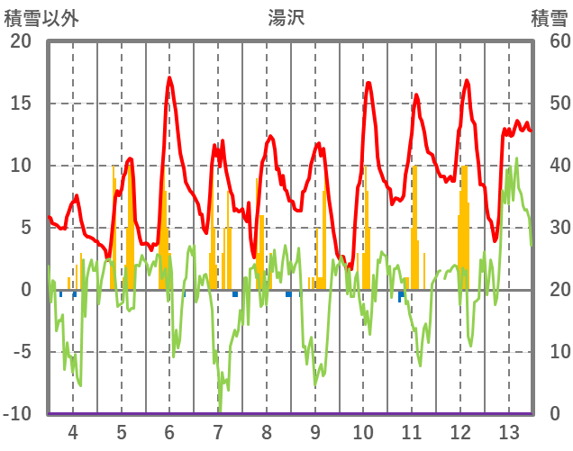 | 日 | 時 | 気温 | 降水 | 風向/風速 | 日照 | 積雪 | 降雪 |