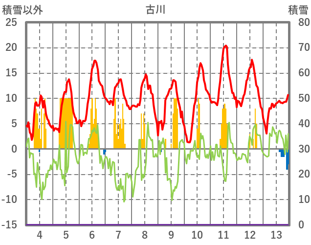 | 日 | 時 | 気温 | 降水 | 風向/風速 | 日照 | 積雪 | 降雪 |