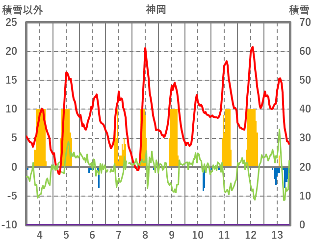 | 日 | 時 | 気温 | 降水 | 風向/風速 | 日照 | 積雪 | 降雪 |