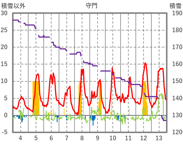 | 日 | 時 | 気温 | 降水 | 風向/風速 | 日照 | 積雪 | 降雪 |