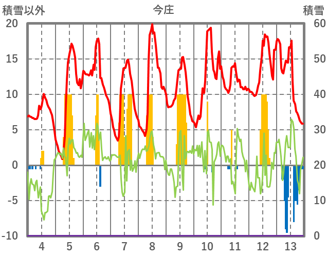 | 日 | 時 | 気温 | 降水 | 風向/風速 | 日照 | 積雪 | 降雪 |