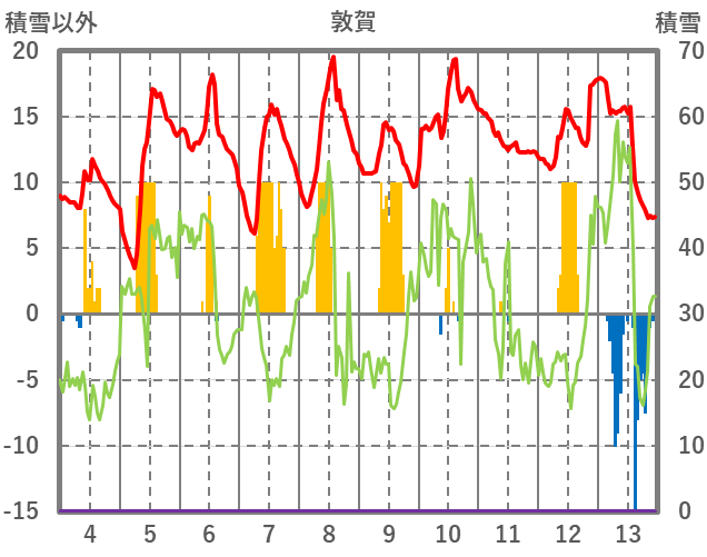 | 日 | 時 | 気温 | 降水 | 風向/風速 | 日照 | 積雪 | 降雪 |