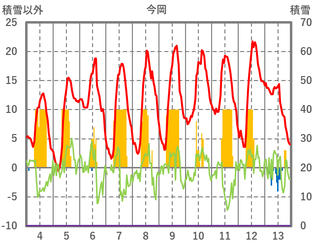 | 日 | 時 | 気温 | 降水 | 風向/風速 | 日照 | 積雪 | 降雪 |