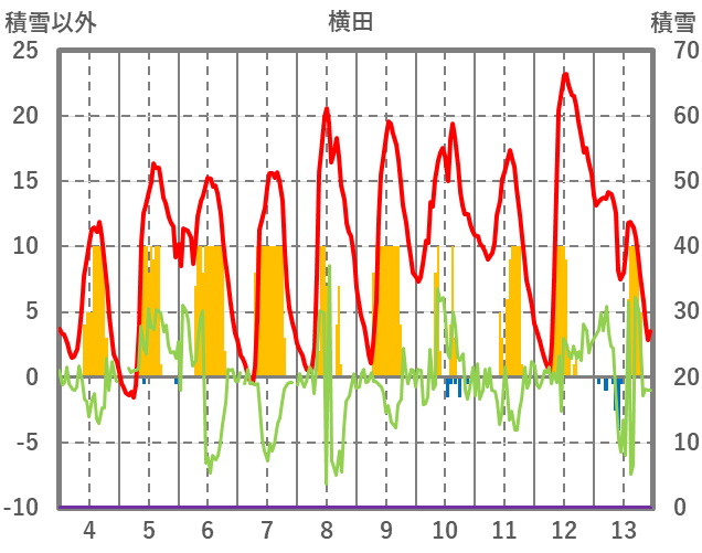| 日 | 時 | 気温 | 降水 | 風向/風速 | 日照 | 積雪 | 降雪 |