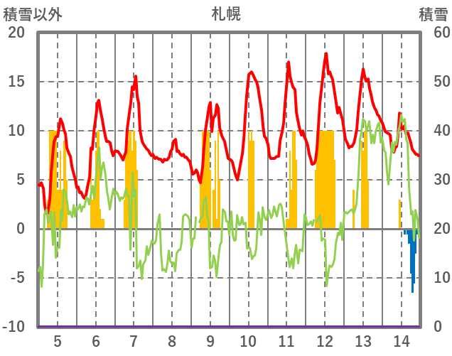 | 日 | 時 | 気温 | 降水 | 風向/風速 | 日照 | 積雪 | 降雪 |