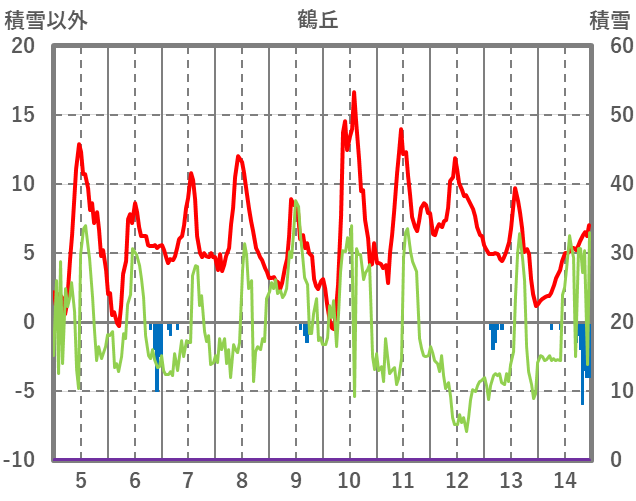 | 日 | 時 | 気温 | 降水 | 風向/風速 | 日照 | 積雪 | 降雪 |