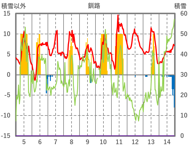 | 日 | 時 | 気温 | 降水 | 風向/風速 | 日照 | 積雪 | 降雪 |