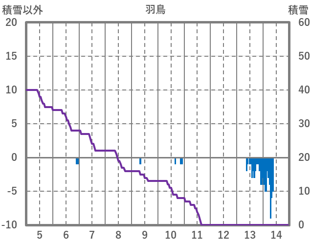 | 日 | 時 | 気温 | 降水 | 風向/風速 | 日照 | 積雪 | 降雪 |