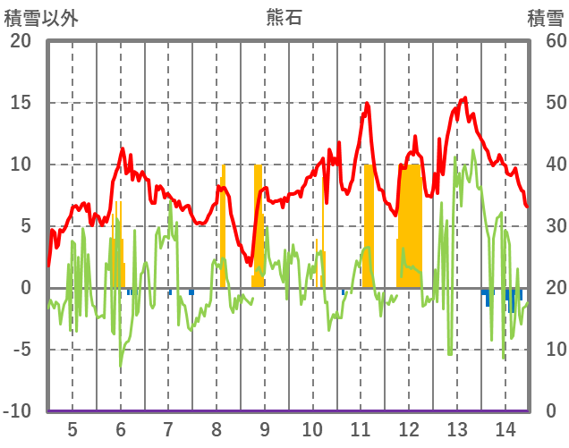 | 日 | 時 | 気温 | 降水 | 風向/風速 | 日照 | 積雪 | 降雪 |