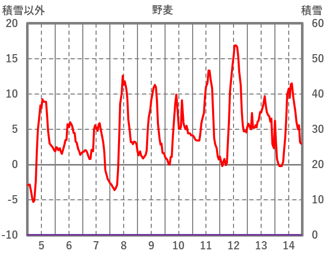 | 日 | 時 | 気温 | 降水 | 風向/風速 | 日照 | 積雪 | 降雪 |