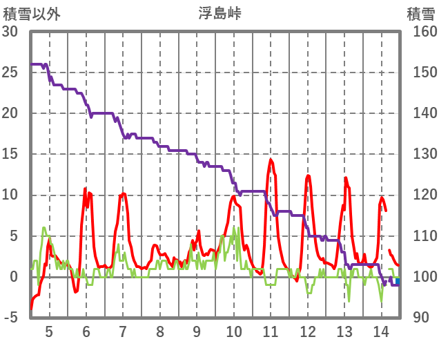 | 日 | 時 | 気温 | 降水 | 風向/風速 | 日照 | 積雪 | 降雪 |