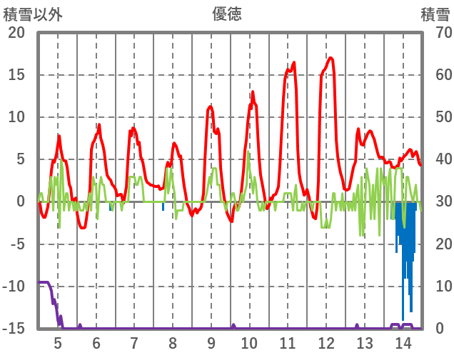 | 日 | 時 | 気温 | 降水 | 風向/風速 | 日照 | 積雪 | 降雪 |