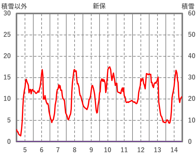 | 日 | 時 | 気温 | 降水 | 風向/風速 | 日照 | 積雪 | 降雪 |