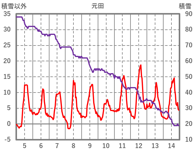 | 日 | 時 | 気温 | 降水 | 風向/風速 | 日照 | 積雪 | 降雪 |